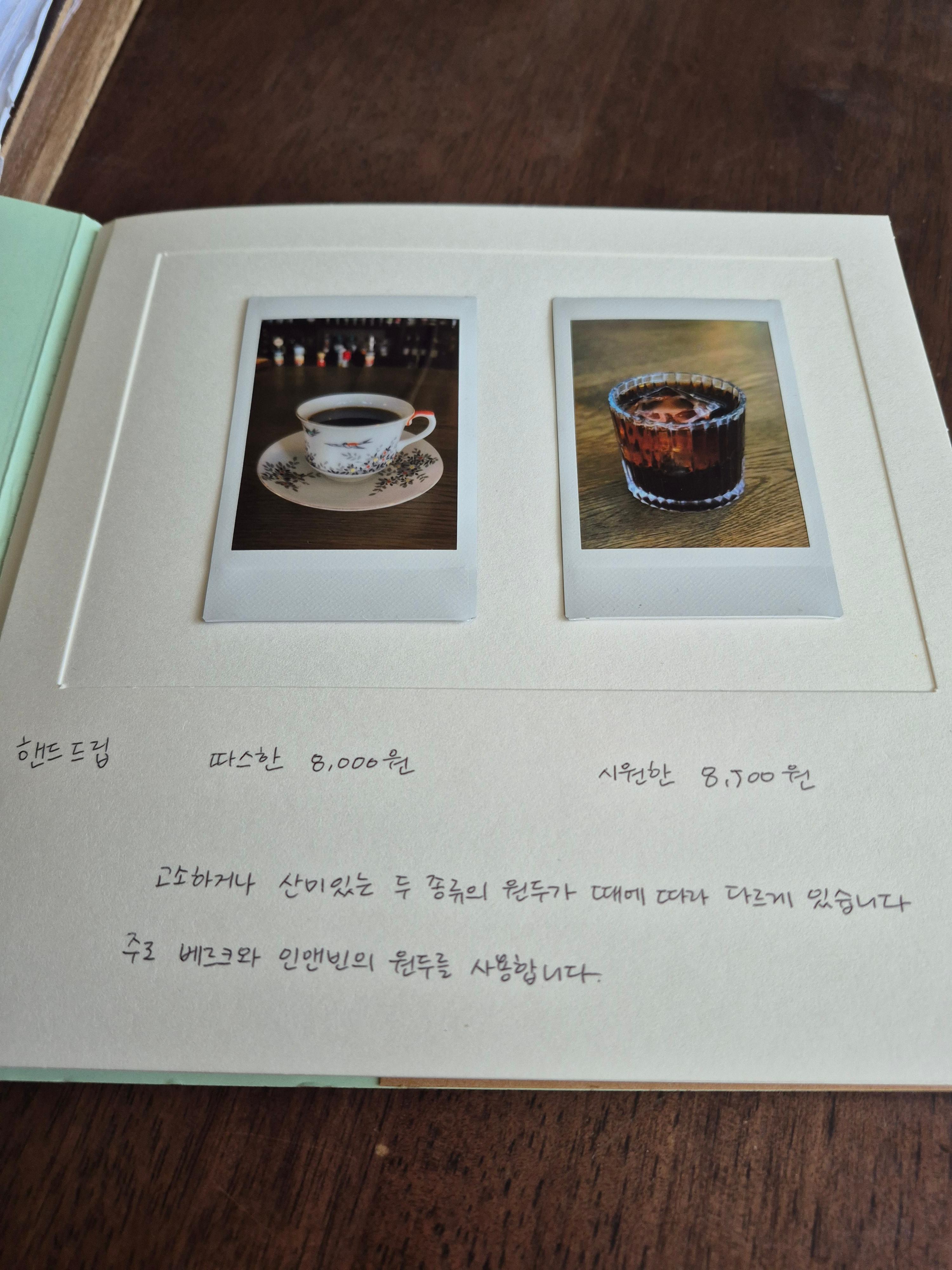 핸드르립 "시원한" 한잔 부탁드렸구요.